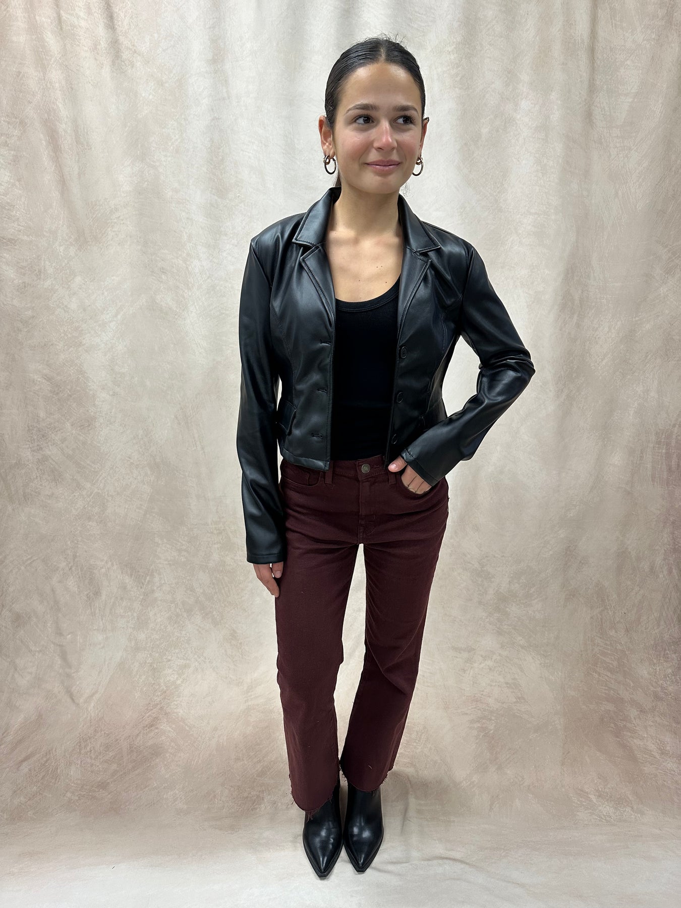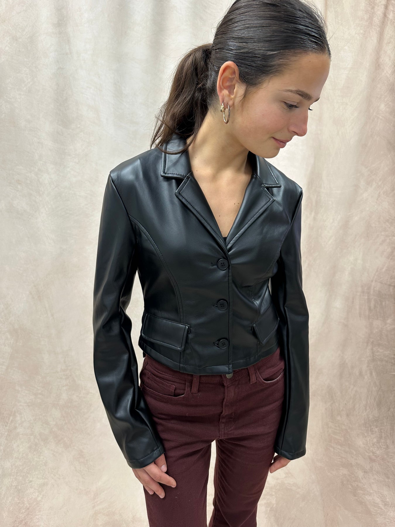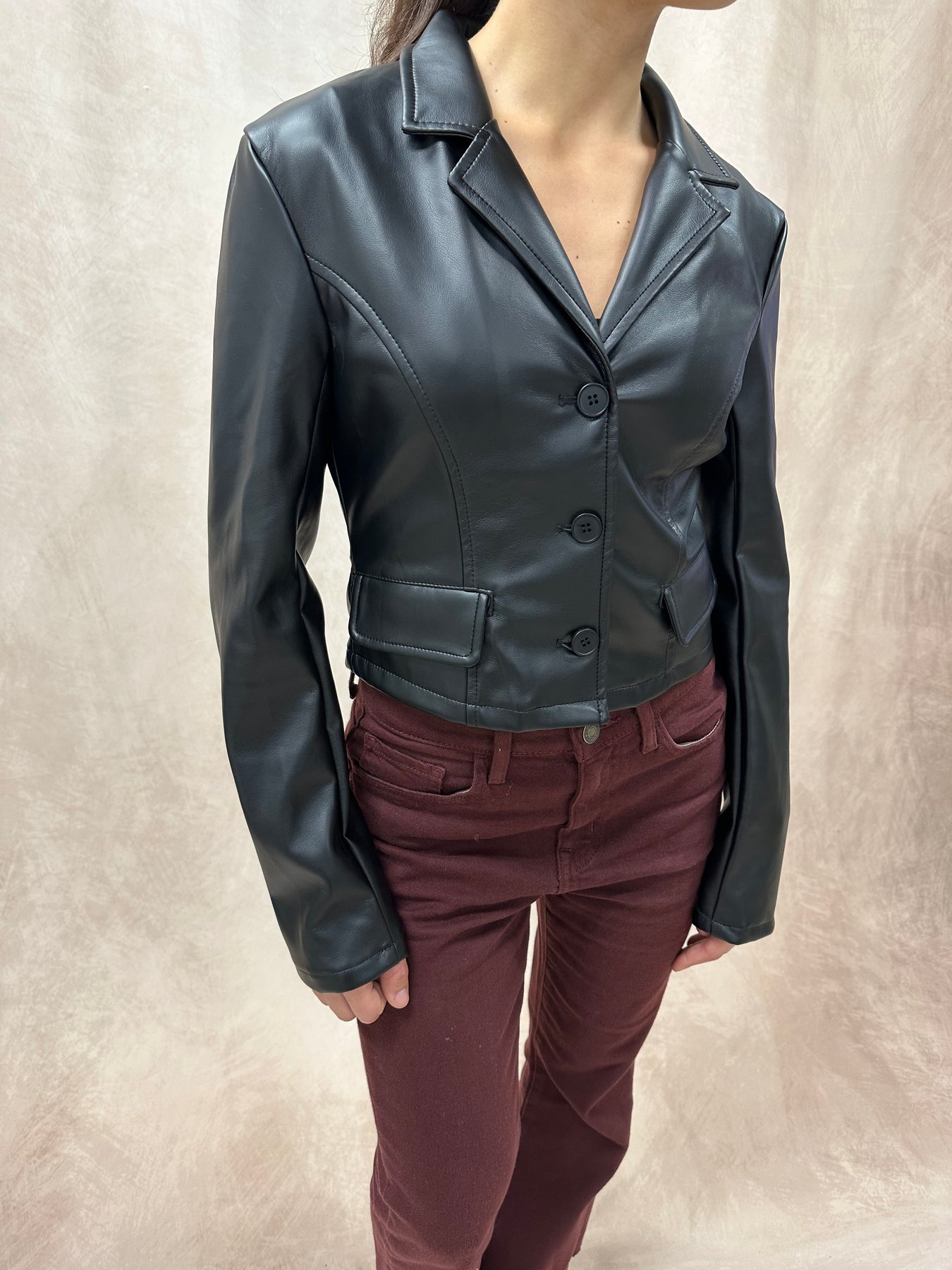 Cropped Faux Leather Blazer