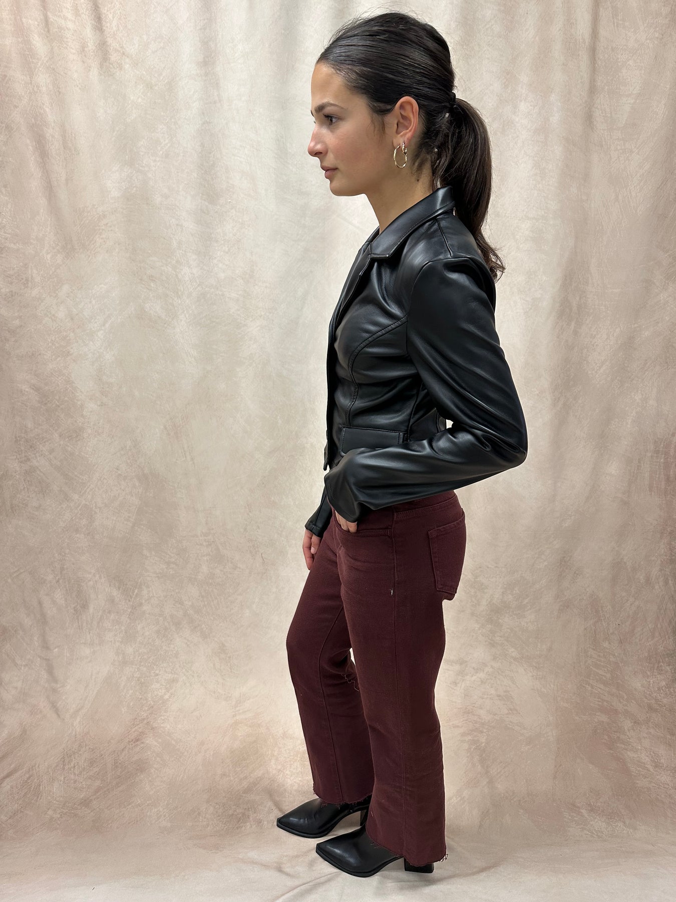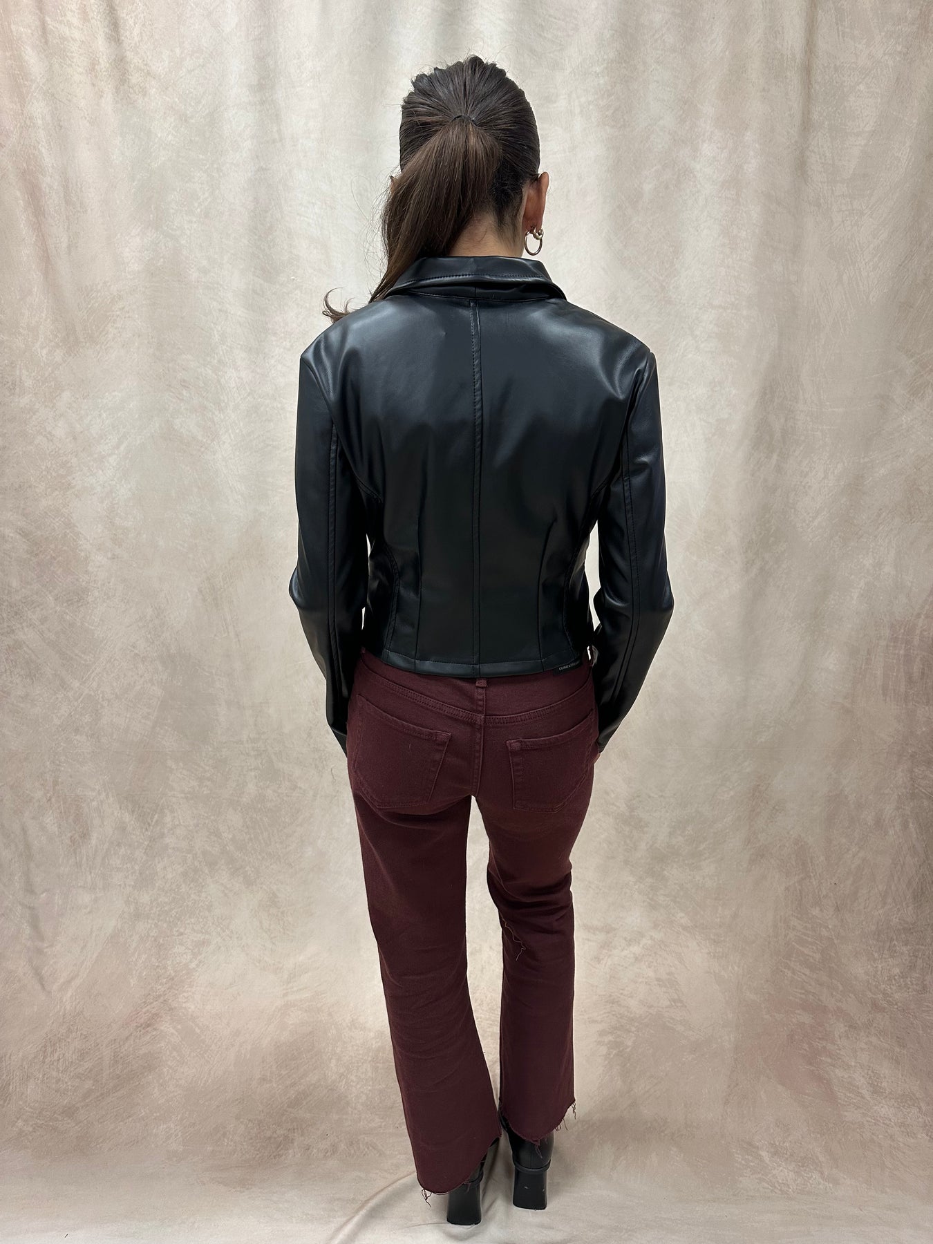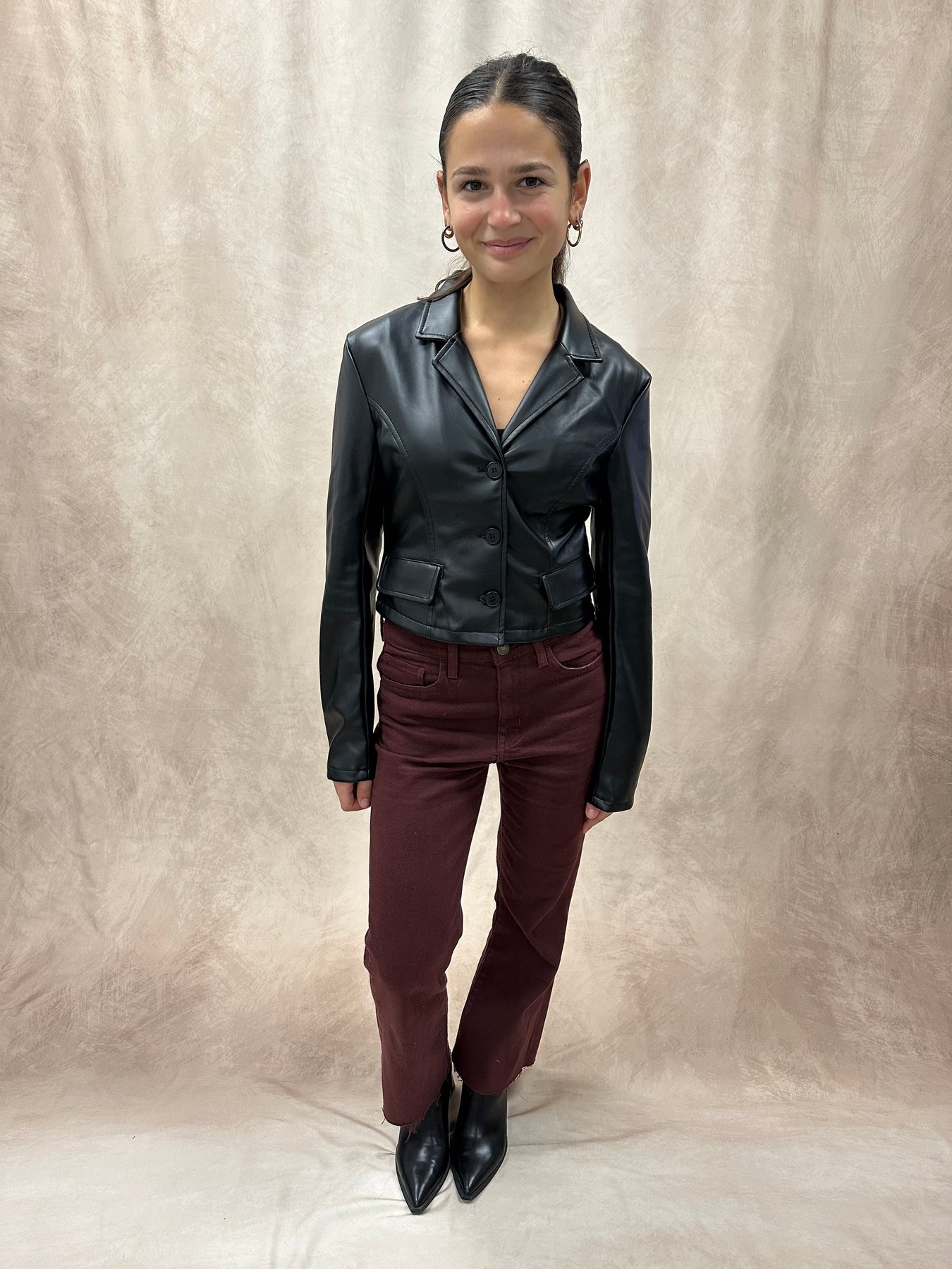 Cropped Faux Leather Blazer