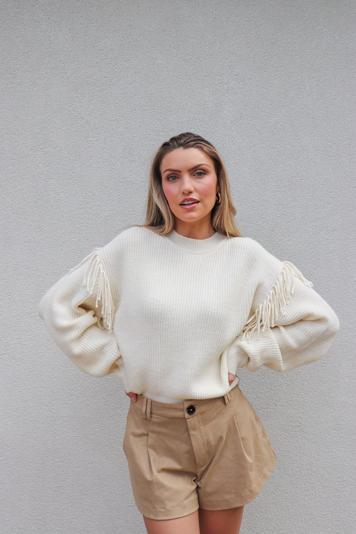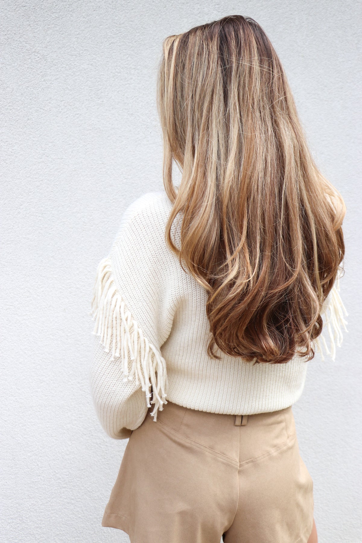 The sweater with movement and attitude. A true closet hero that effortlessly carries you from crisp mornings to candlelit evenings.Pair it with slim jeans and ankle boots for a chic everyday look, or transform it with a midi skirt, heeled boots, and layered jewelry for a fall-ready statement outfit that is equal parts cozy and bold.