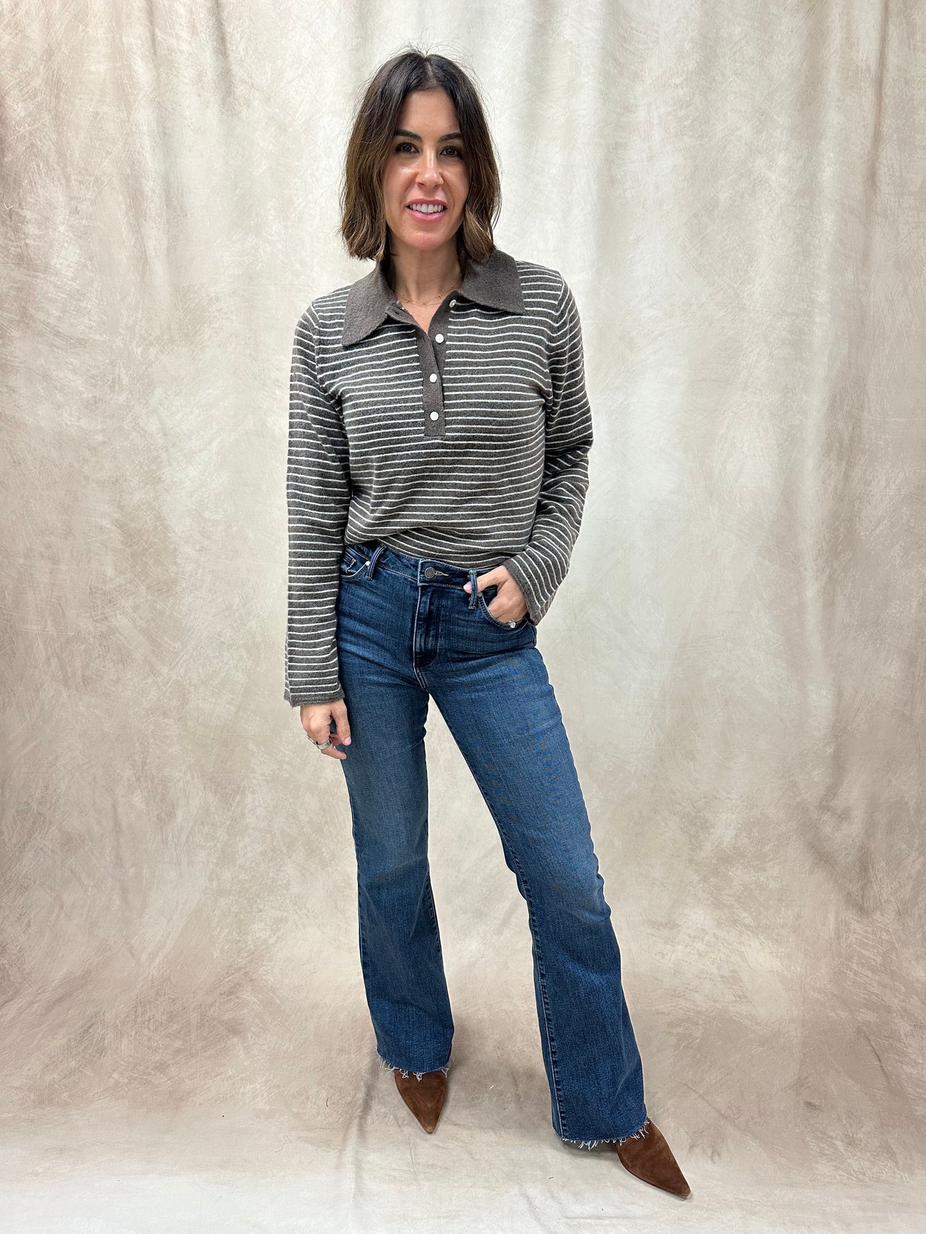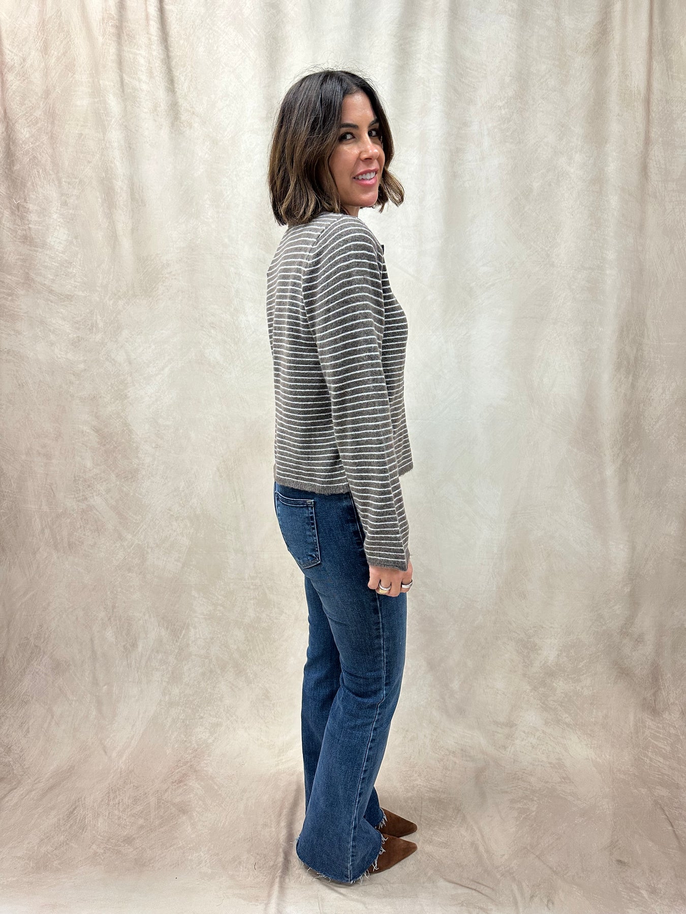 Candice is wearing a size Small. She is 5'7” and typically wears a size Small in sweaters.
