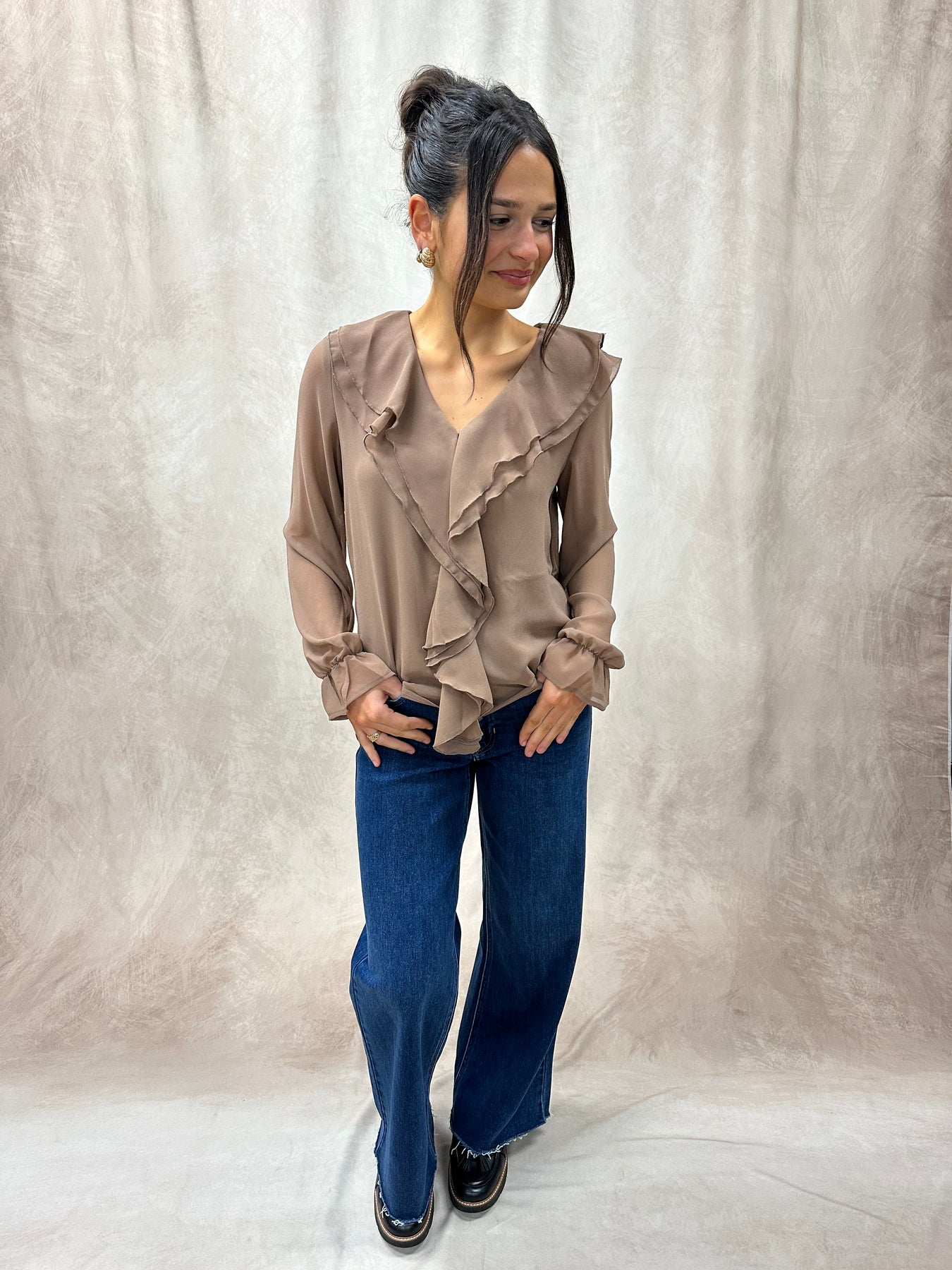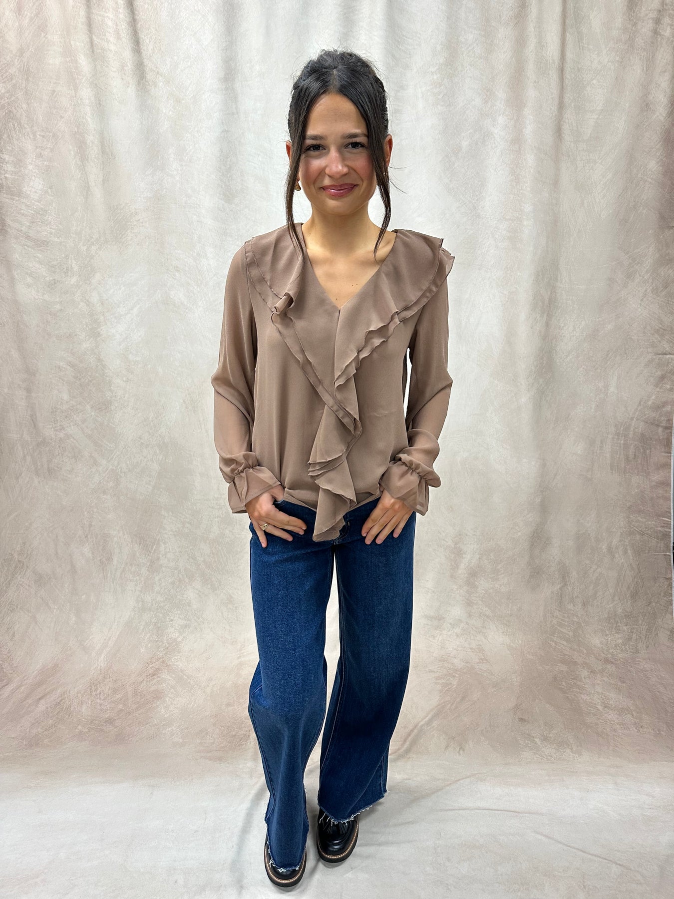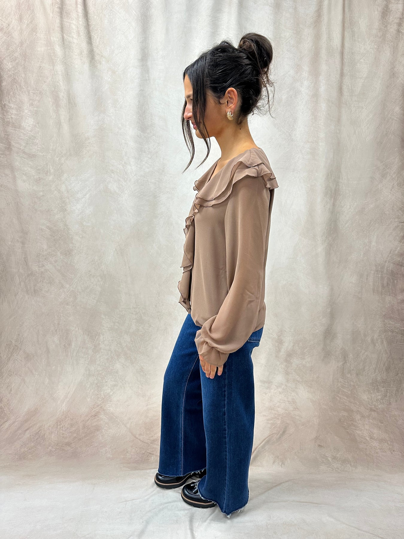 Lauren is wearing a size Small. She is 5’2” and typically wears a size XS/Small in tops.