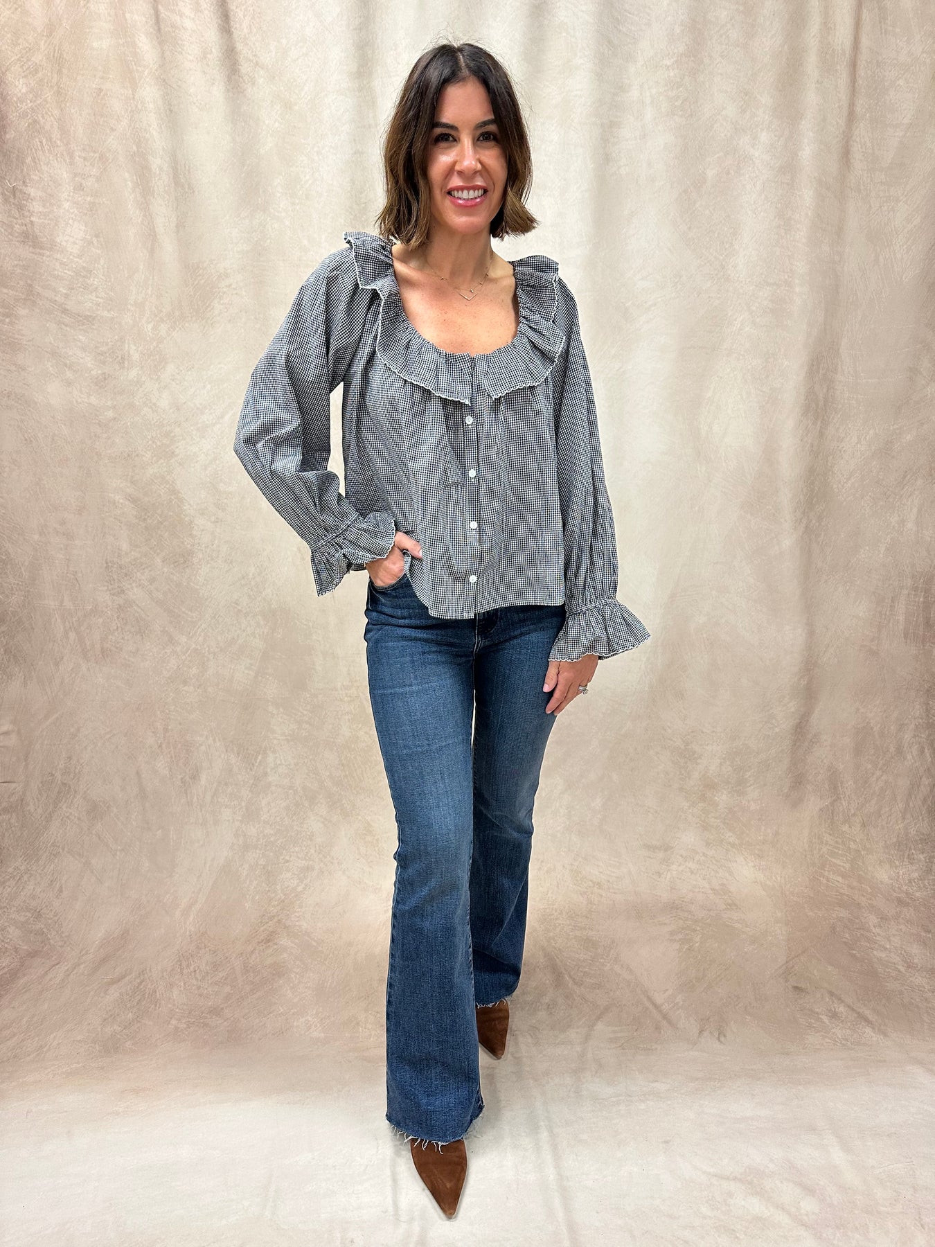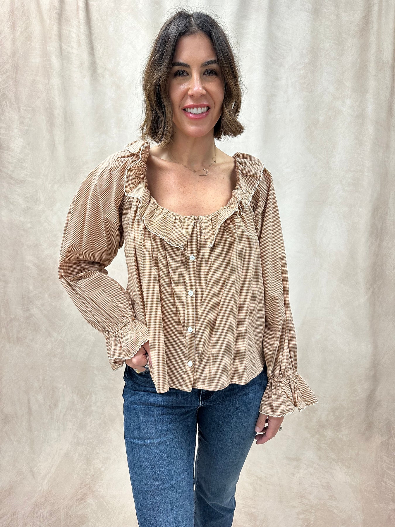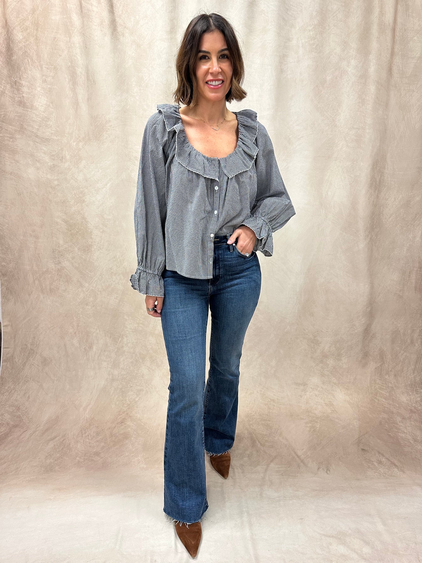 Candice is wearing a size Small. She is 5'7" and typically wears a size Small in Tops.