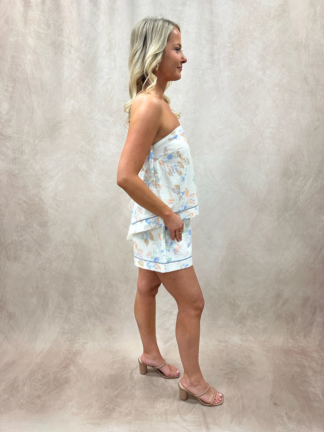 Turn heads in the Floral Detail Strapless Short Set, a playful yet polished look perfect for warm days and nights out. The strapless top highlights the shoulders with a clean, flattering neckline, while delicate floral detailing adds a soft, feminine touch. Paired with matching high-waisted shorts, this set offers a coordinated silhouette that’s both comfortable and effortlessly chic. Lightweight and easy to wear, it’s your go-to for sunny getaways or casual outings with style. Elevate the look with strappy sandals or espadrilles and a woven bag for a breezy vibe. Layer on dainty gold jewelry and throw on a light cardigan or denim jacket when the temperature dips.